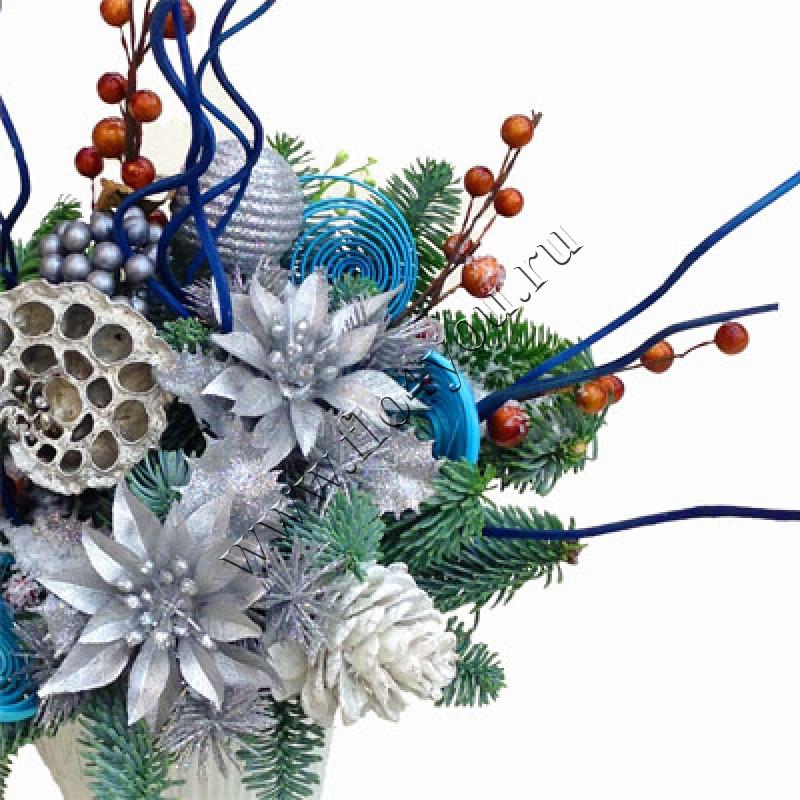 Новогодняя композиция с живой елью украсит Ваш праздник.