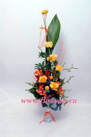Композиция в стекле среднего размера украсит офисное помещение и подойдет для торжественных случаев.