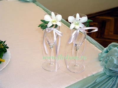Оформление бокалов для молодоженов.