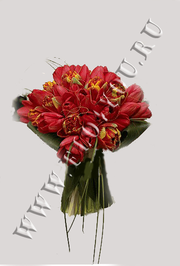 Этот букет подкупает своей простотой и изяществом одновременно. Он подойдет к любому наряду, тем более, что цвет тюльпанов можно выбрать по желанию от пурпурно-красных, как на фото до нежно-кремовых.