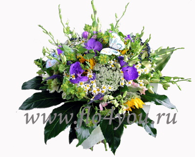 Большой букет из летних цветов и орхидеи «Ванда» - шикарный подарок для любого случая.