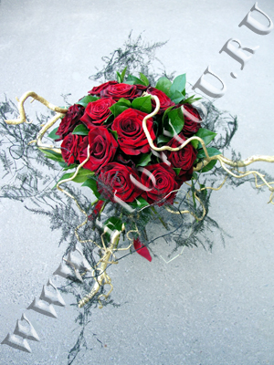 15 роз Гран-при оформлены декоративным золотым корелиусом и черным аспарагусом.