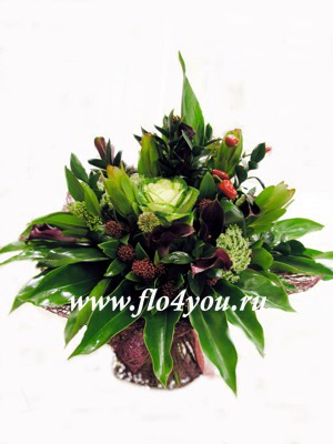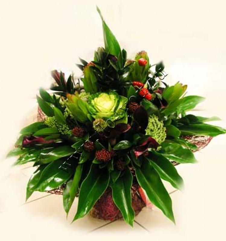 Стильно и дорого — это букет в бордово-зеленых тонах.