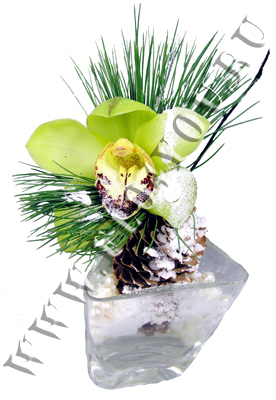 Мини-композиция в стекле с орхидеей цимбидиум и шишкой.