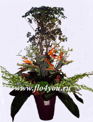 Интерьерная композиция из экзотических цветов.