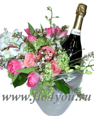 В состав композиции входит кулер для вина, украшенный цветами. Стоимость вина не включена. Его Вы можете выбрать на свое усмотрение.