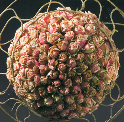 Букет из кустовой разы на декоративном каркасе.