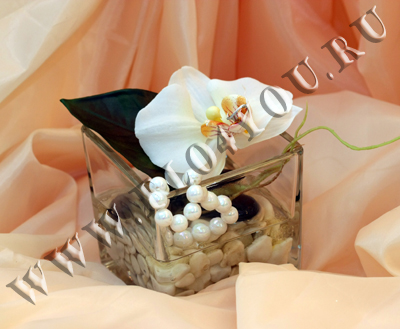 Композиция с искусственным цветком орхидеи с использованием геля "живая вода".
