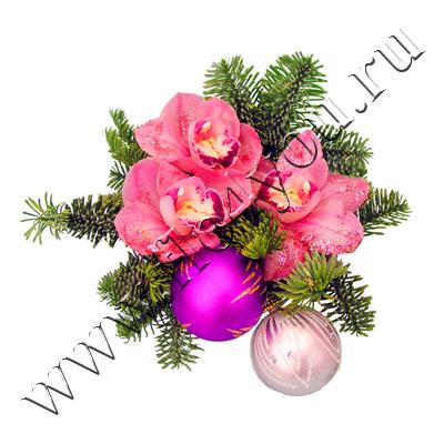 Новогодняя композиция с живой елочкой и орхидеями цимбидиум.