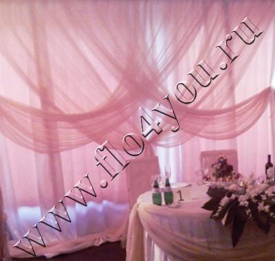 Декорирование тканью стены за столом жениха и невесты