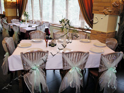 Указана стоимость за оформление 1-го стула тканью 1-го вида и бантом. Цветовая гамма может быть изменена по желанию.