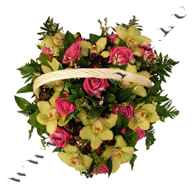Композиция выполнена в виде сердца. Примерные размеры 50-55см х 45-50см.