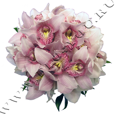 Букет невесты из нежно-розовых орхидей собран в параллельной технике.