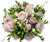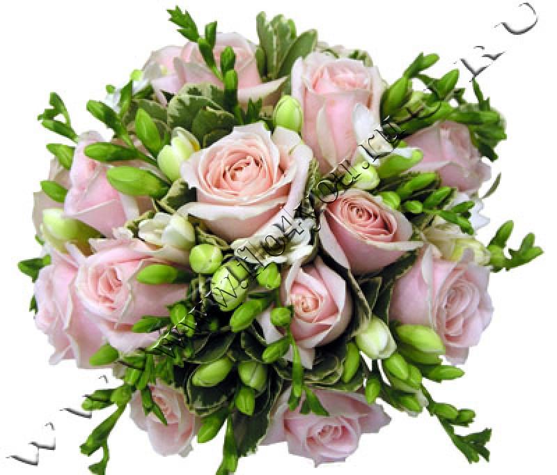 Свадебный букет из светло-розовых роз и белой фрезии.
