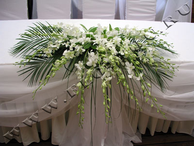 Композиция на стол молодых из нежных орхидей.