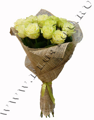 11 белых крупных роз в натуральной упаковке "Джут".