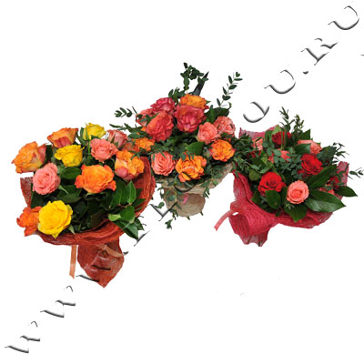 Букеты из красивых, крупных роз с зеленью. Цветовые решения - на Ваш вкус. Упаковка - сезаль и атласная лента. Цена указана за 1 букет.