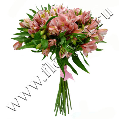 Альстромерия просто собрана по спирали и перевязана атласной лентой. Цветовая гамма - в ассортименте. Такой букет можно подарить женщине или мужчине, и он будет долго радовать своего обладателя. Примерный диаметр 25-30см. Высота регулируется по желанию.
