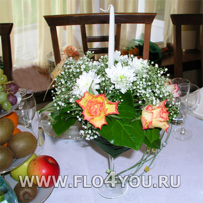 Мини-композиция на стол в бокале «Мартини» со свечой