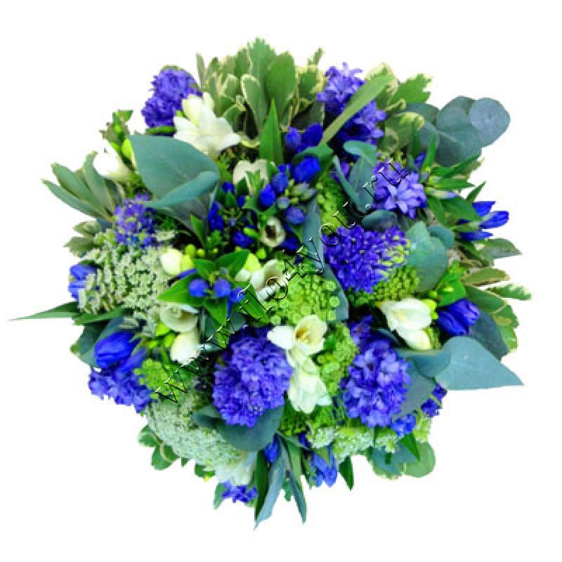 Этот плотный букет в сине-белой гамме, словно кусочек чистого неба с плывущими по нему белыми облаками.