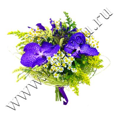 Небольшой очень стильный букетик с фиолетовой Вандой.
