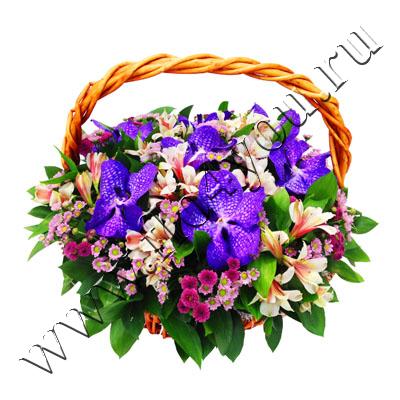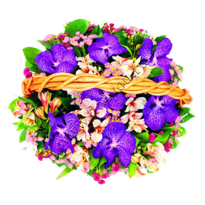 Корзина с Вандой напоминает лужайку с цветами,на которой притаились волшебные бабочки.