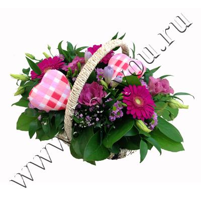 Яркая корзинка с двумя сердечками.