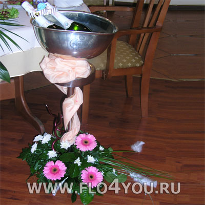 Оформление стойки с шампанским герберами