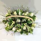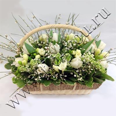 Сказочная белоснежная корзинка с ландышами и сиренью.