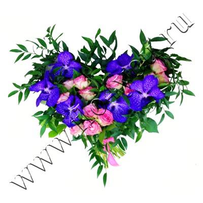 Сердце из роз и орхидей смотрится необычно и загадочно.