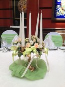 В стоимость входит аренда подсвечника, свечи, композиция из цветов с атласными бантиками.