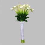 Букет собран на своих стеблях и задекорирован атласной лентой и бусинками.