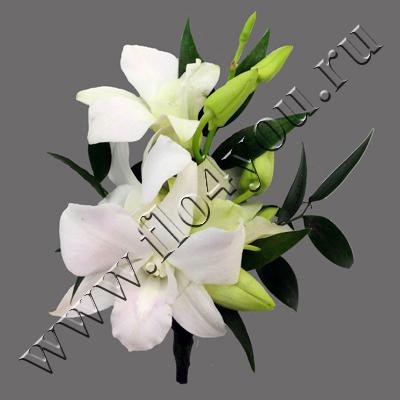Бутоньерка из нежного Дендробиума подойдет к букету из этих прекрасных цветов.