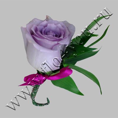 Бутоньерка с необыкновенно красивой сиреневой розой подойдет к любому букету в этой цветовой гамме.