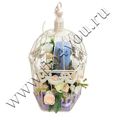 Стильная новогодняя композиция в клетке может украсить интерьер дома или праздничного мероприятия.