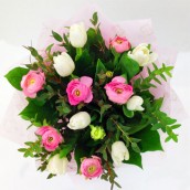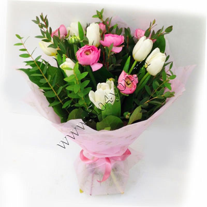 Нежный букетик из тюльпанов и ранункулусов для милых дам.