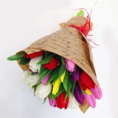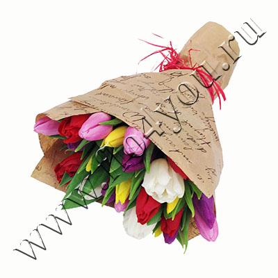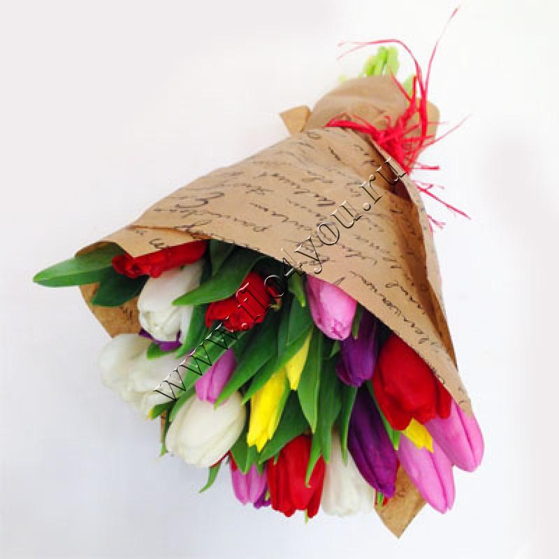 Тюльпаны всех цветов радуги собраны в этом милом букетике.