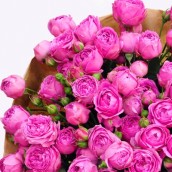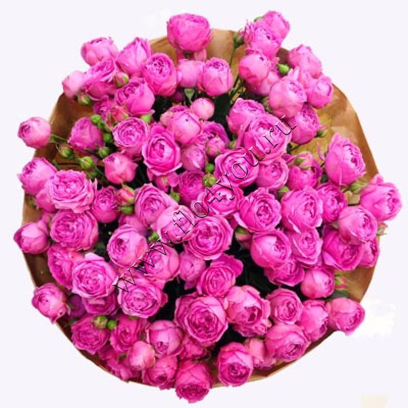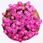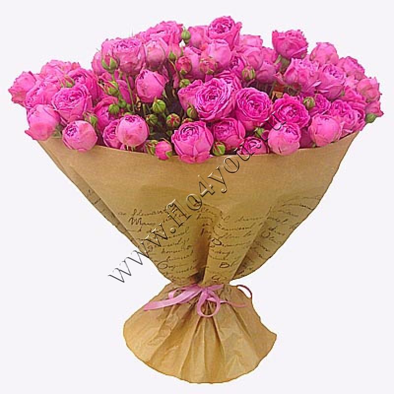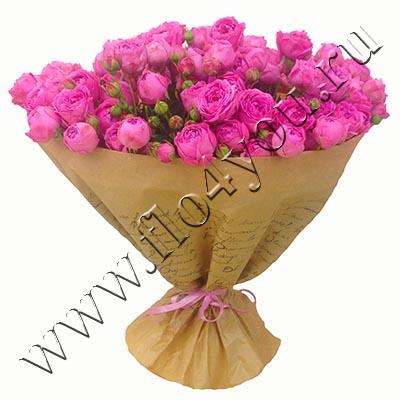 Шикарный букет собран из необычайно красивых, пионовидных кустовых роз.
