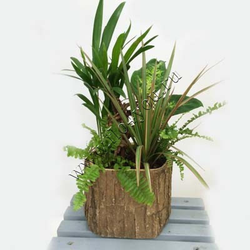 Мини-сад из живых цветов подойдет для дома или офисного помещения.