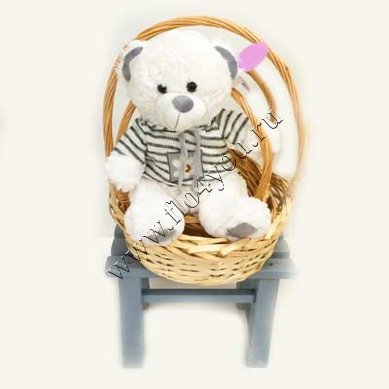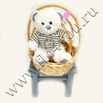 Корзинку с цветами принесет симпатяга медвежонок