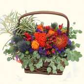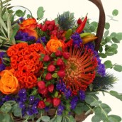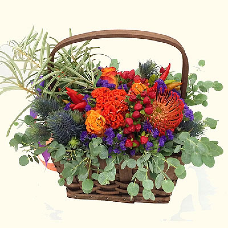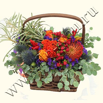 Корзинка с яркими экзотическими цветами для яркой натуры.