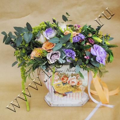 Композиция с необычными розами Капучино.