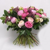 Удивительный букет собрал в себе все оттенки розового цвета.