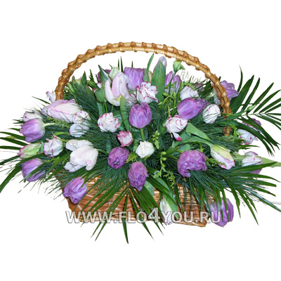 Корзина с тюльпанами и эустомой.