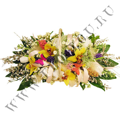 Подарочная корзинка с орхидеями и тюльпанами.