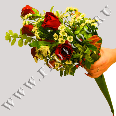 Свадебный букет с красными розами.