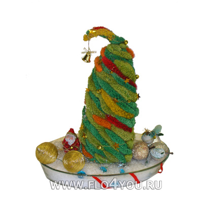 Елочка из сухоцветов с искусственным снегом.