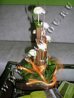 Настольная композиция из ранункулюсов подойдет для дома и для офиса.
