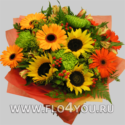 Букет из подсолнухов и гербер.