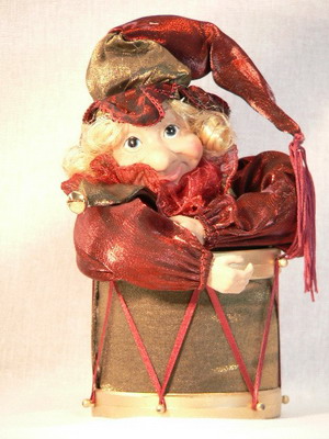 Музыкальный клоун на барабане , (лицо керамика) бордо 25,40 см